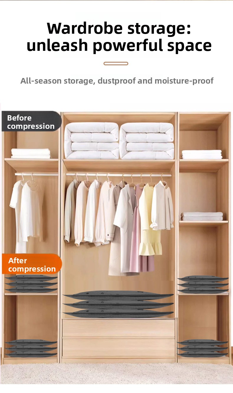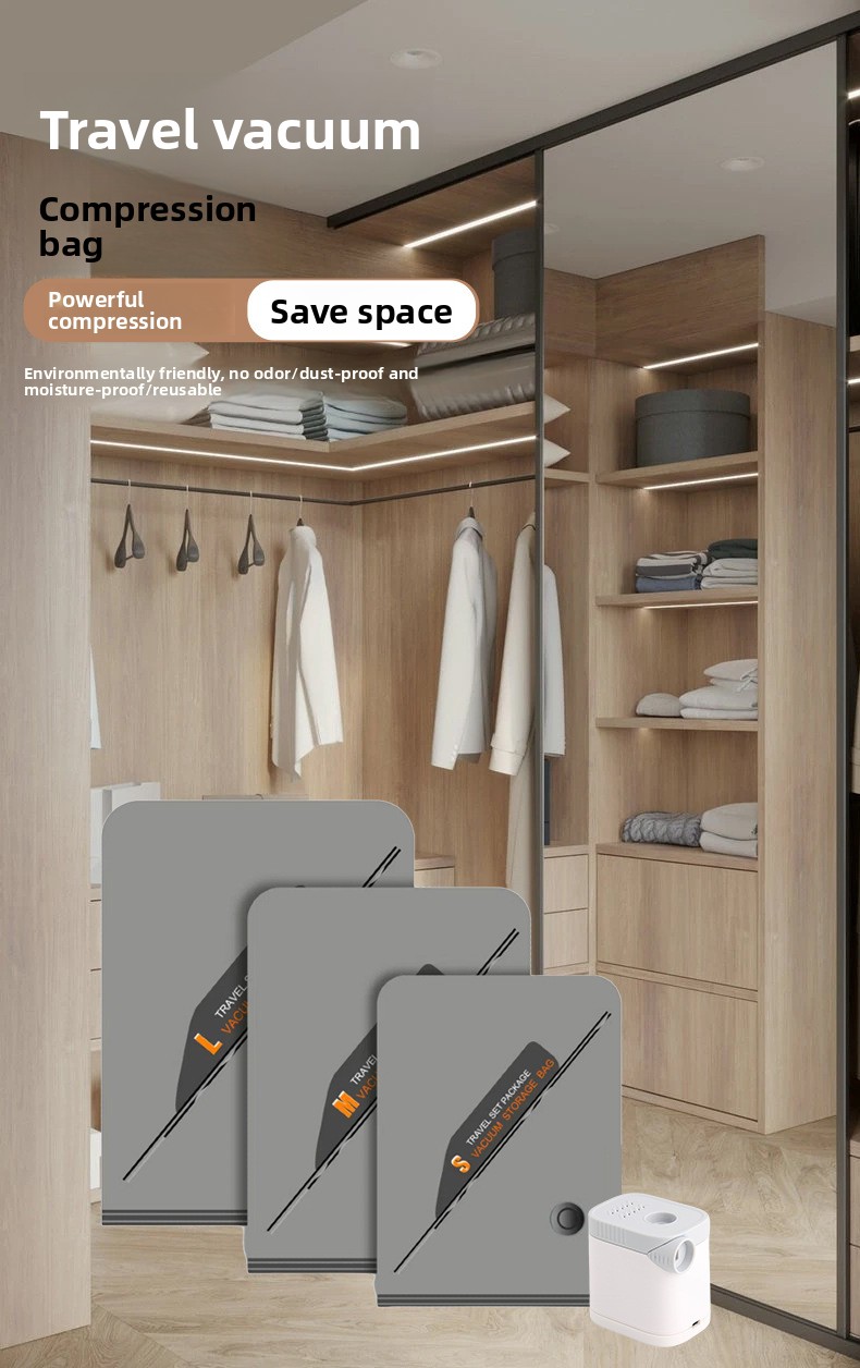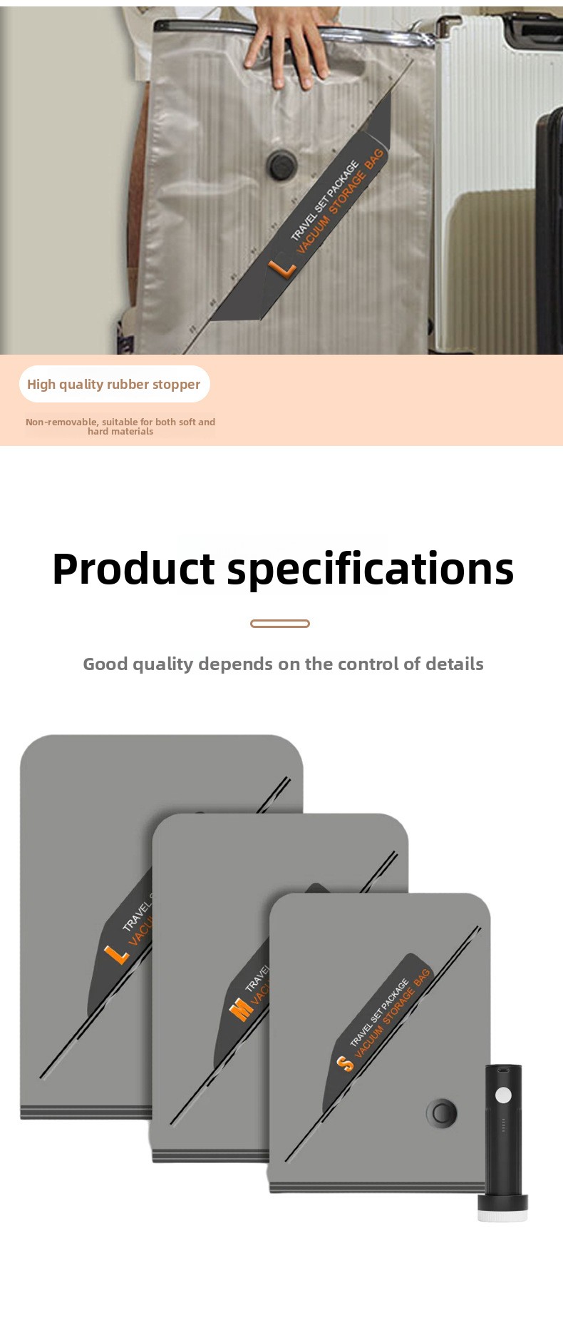 Vacuum Compression - Reduces clothing volume by 70% for efficient packing